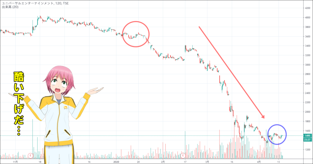 ユニバの下げが特に酷くって、高い時で約4,000円あったのが今では半額以下の約1,500円です。
